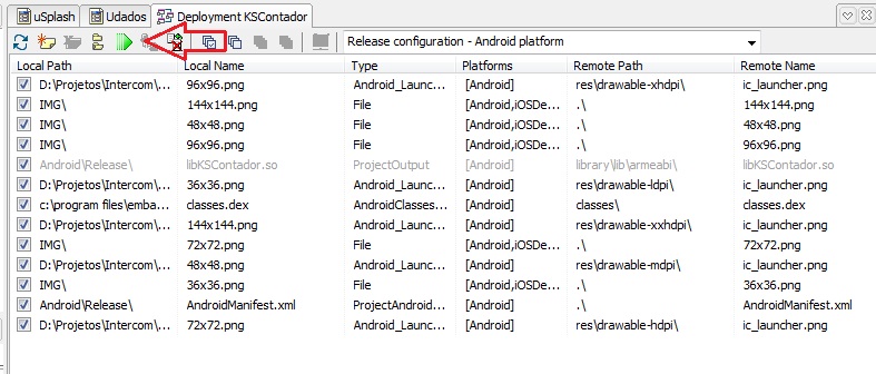 Ícones: Project → Options → Application fornecer os ícones e imagens para representar a sua aplicação onde é possível configurar os ícones de acordo com as resoluções: