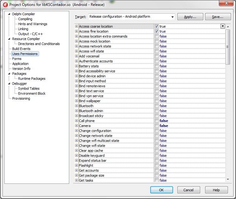 Estas opções o Delphi grava em um arquivo chamado AndroidManifest.xml